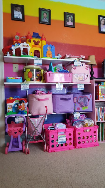 Then adding the clothes and accessories. Making sure the kids could reach them.